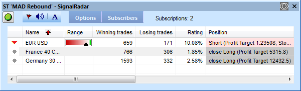 For illustrative purposes a table based on the MAD Rebound scalping strategy is available in the SignalRadar.