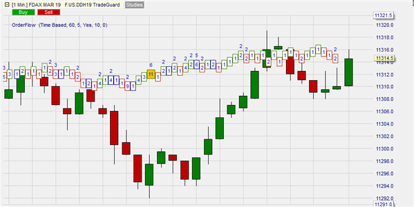 grafiek in de tijdseenheid 1 minuut voor de DAX future. De